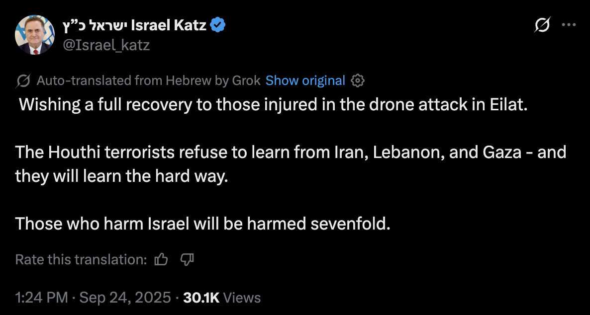 The Houthi terrorists refuse to learn from Iran, Lebanon, and Gaza - and they will learn the hard way. Those who harm Israel will be harmed sevenfold.