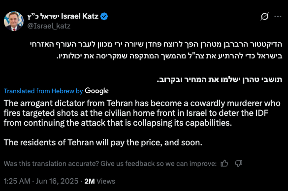 What we did to Hezbollah in Beirut, Hamas in Gaza, Assad in Damascus, and the Houthis in Yemen - we will also do to you in Tehran.