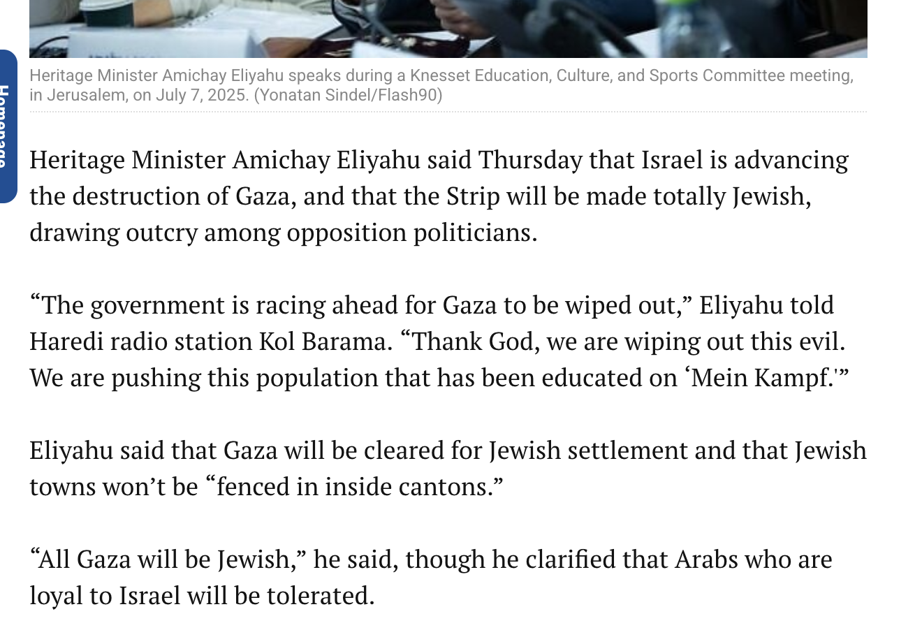 The government is racing ahead for Gaza to be wiped out. Thank God, we are wiping out this evil. We are pushing this population that has been educated on ‘Mein Kampf.'