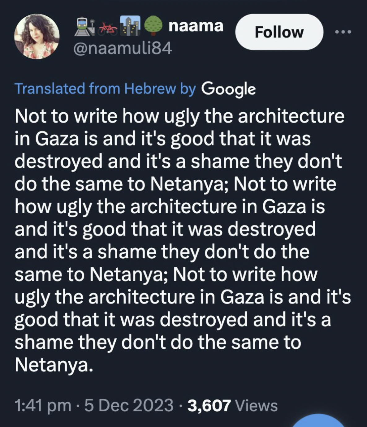Not to write how ugly the architecture in Gaza is and it's good that it was destroyed and it's a shame they don't do the same to Netanya; Not to write how ugly the architecture in Gaza is and it's good that it was destroyed and it's a shame they don't do the same to Netanya; Not to write how ugly the architecture in Gaza is and it's good that it was destroyed and it's a shame they don't do the same to Netanya.