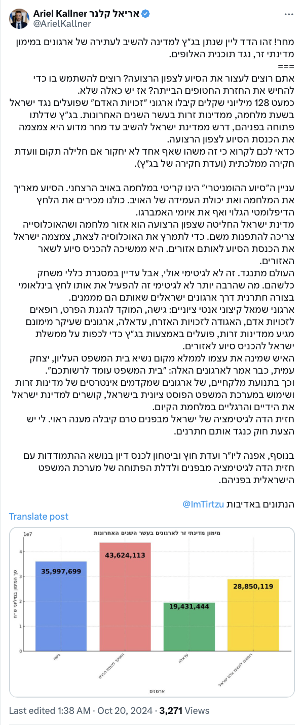 At this very moment, aid trucks continue to enter the Gaza Strip! enough! How long will we bow our heads and endure the shame? That's not how you defeat terrorism. stop everything immediately bring back a total blockade. Return instructions to open fire in the north of the Gaza Strip against all incoming Gazans.